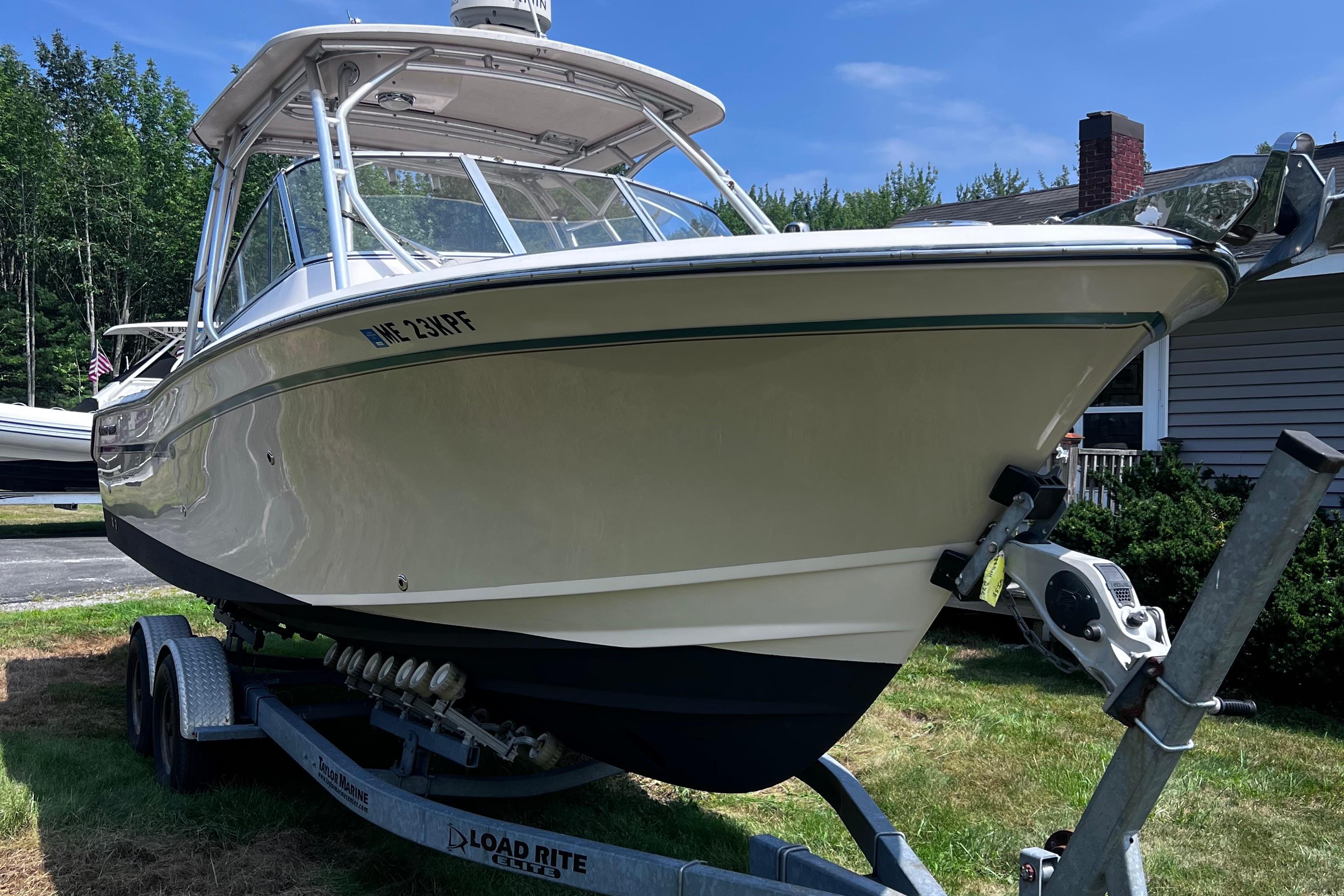 Introducing the 2012 Grady-White Freedom 275, a remarkable dual console boat that embodies both style and functionality. With an overall length of 27.4 feet, this vessel is crafted from durable fiberglass, ensuring longevity and performance on the water. Powered by twin Yamaha F150 outboard engines, each delivering 150 horsepower, this boat promises an exhilarating experience with reliable gasoline performance. The stainless steel 3-blade propellers enhance efficiency and maneuverability, making it a joy to navigate various waterways. Equipped with an electric windlass, the Freedom 275 simplifies anchoring, allowing for effortless transitions between cruising and relaxing. The thoughtfully designed accommodation includes a head, ensuring comfort during your outings. This used model combines modern features with the renowned craftsmanship of Grady-White, making it an excellent choice for both seasoned boaters and newcomers alike. Experience the perfect blend of adventure and leisure with the Freedom 275.