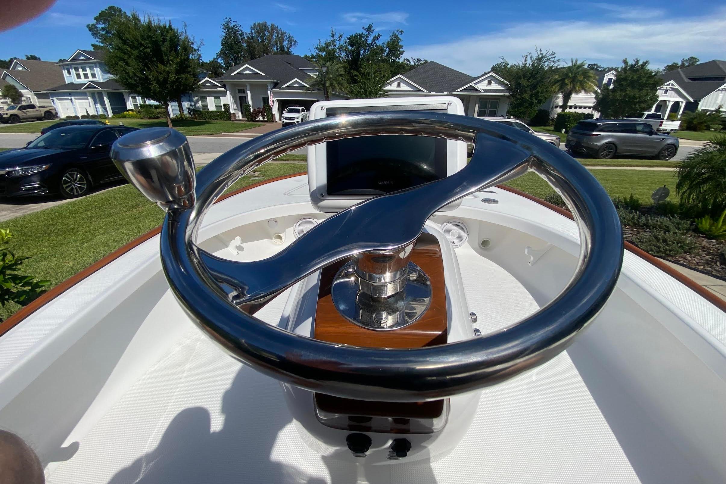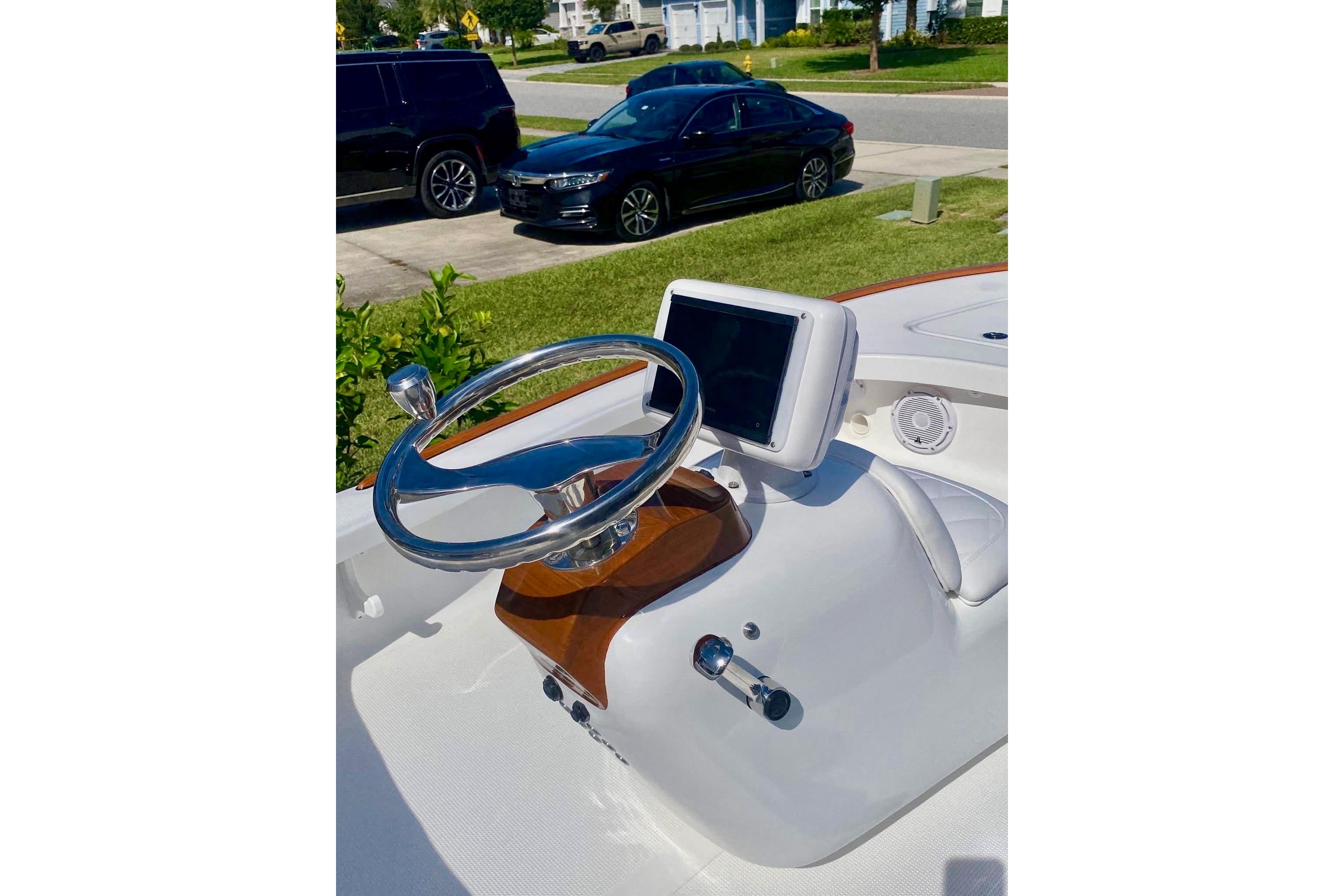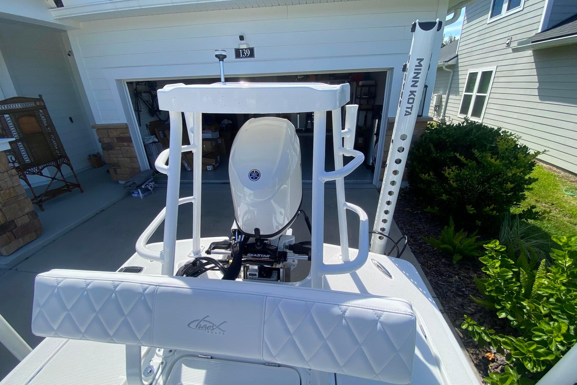 Get a look at this better than new 2026 16 Chaos Bonefish! The owner just took delivery and his plans have changed. Avoid the extensive lead time and fish this skiff tomorrow! This boat was heavily optioned from the factory and is ready to fish the flats or serve as a Yacht Tender now! She has under 10 hours on her 70HP Yamaha with YES warranty until 2030. A custom single Palm Beach style helm control was added along with a faux teak helm pod and toe rail. A Garmin MFD installed in a helm pod gives you all the navagation tools that you will need. She also has a custom Magic Tilt trailer with spare. Please see the full specs for a complete equipment list. Additional photos coming soon. Call today!!! Additional Equipment Raw Water Washdown, Release Well Plumbing Padded Removable Backrest 2 Welded Rod Holders on Platform, Cup Holders 2 Lumitec Quattro Underwater Lights Dual Battery System, 2 Battery Charger Custom Cover Fusion Stereo w/4 speakers Faux Teak Helm Pod and Toe Rail Custom Magic Tilt Trailer 8' Power Pole (White), Minn Kota Trolling Motor Atlas Micro Jackplate Garmin MFD with NMEA Backbone, Navpod Airmar Tilted Element Transducer Palm Beach Shifter